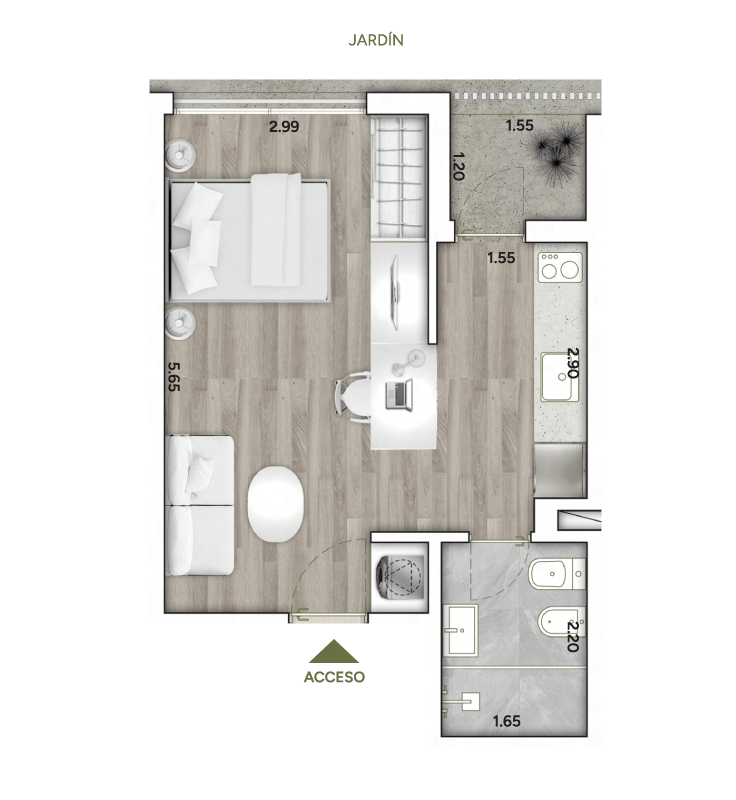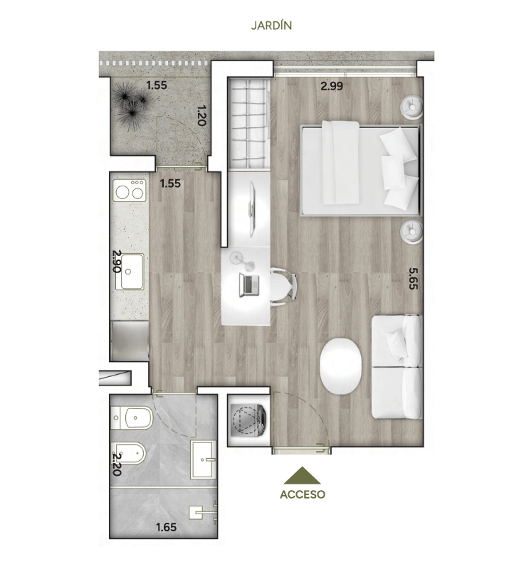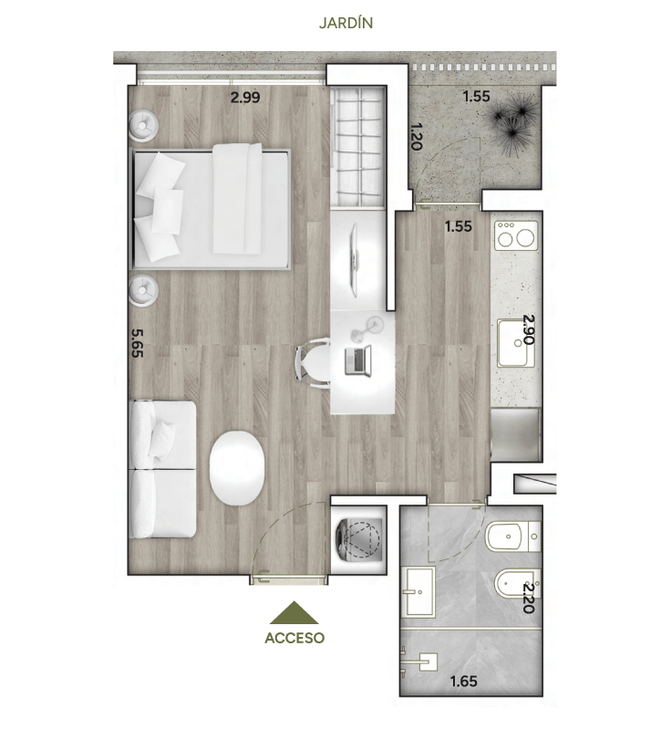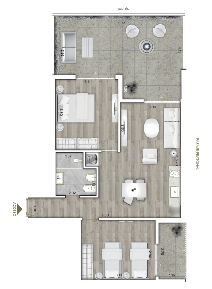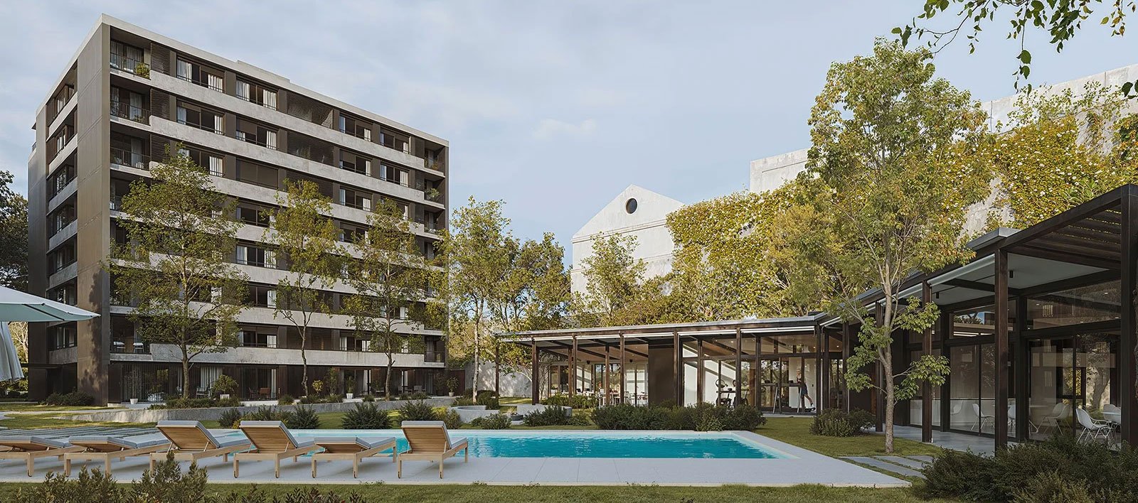 Puerta Jardín es un proyecto inspirado en la naturaleza, de estilo sobrio y atemporal, que cede el protagonismo a un jardín de cuidado paisajismo de 2.300 m², respetando la esencia de un barrio que guarda la rica historia arquitectónica de Montevideo y se integra a la tradición de espacios ajardinados característicos de la zona.