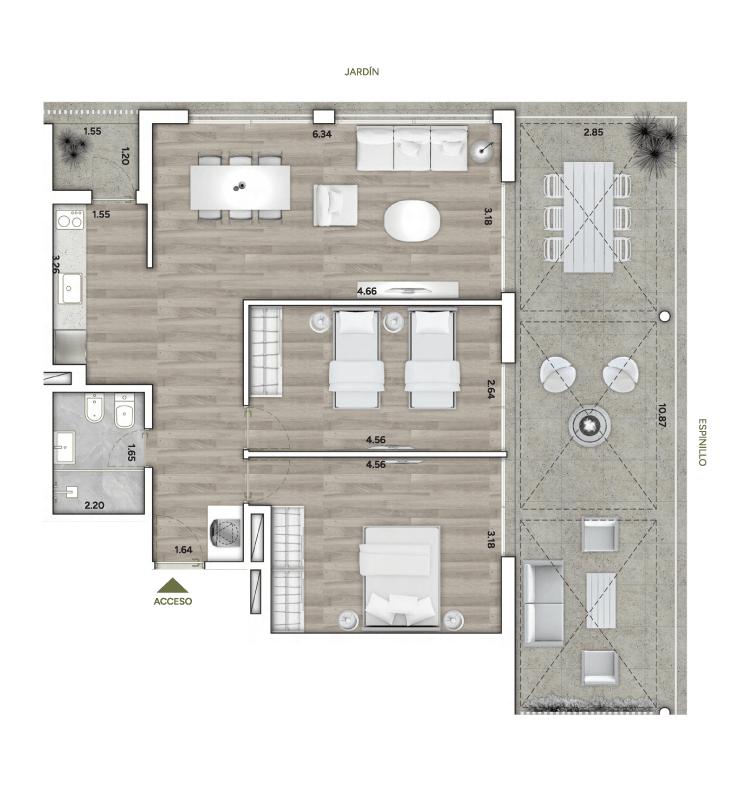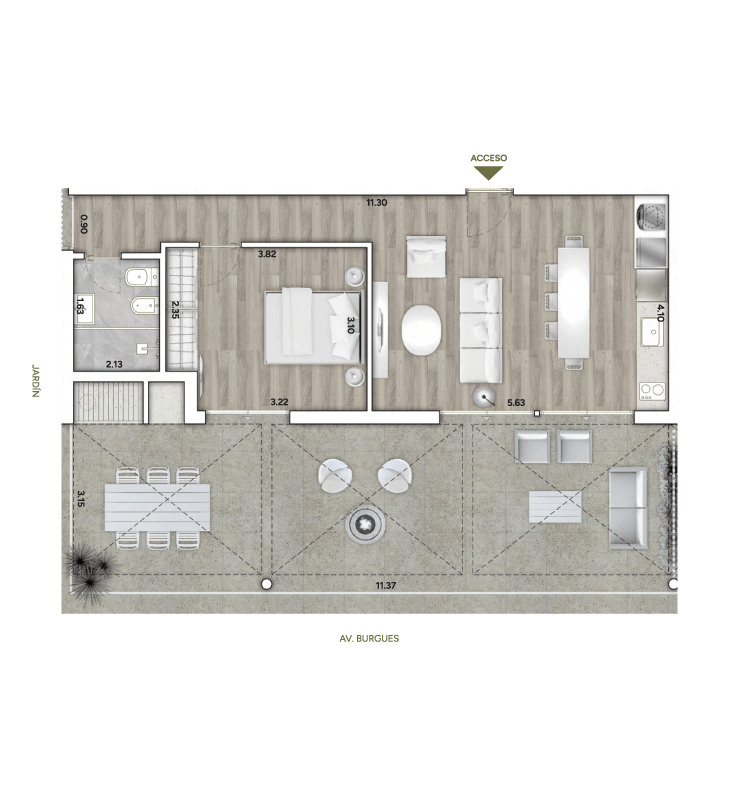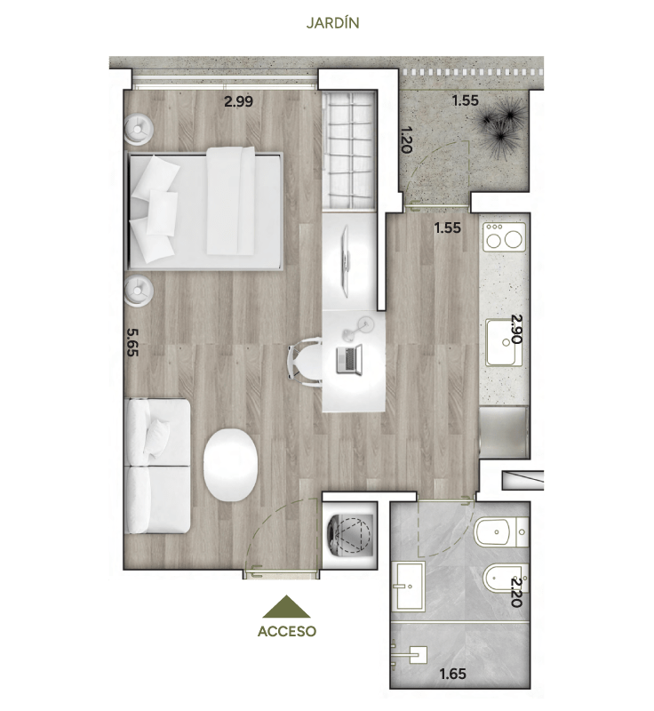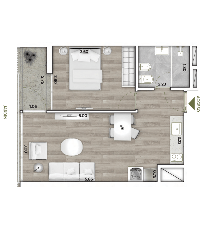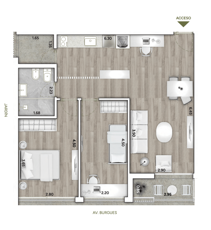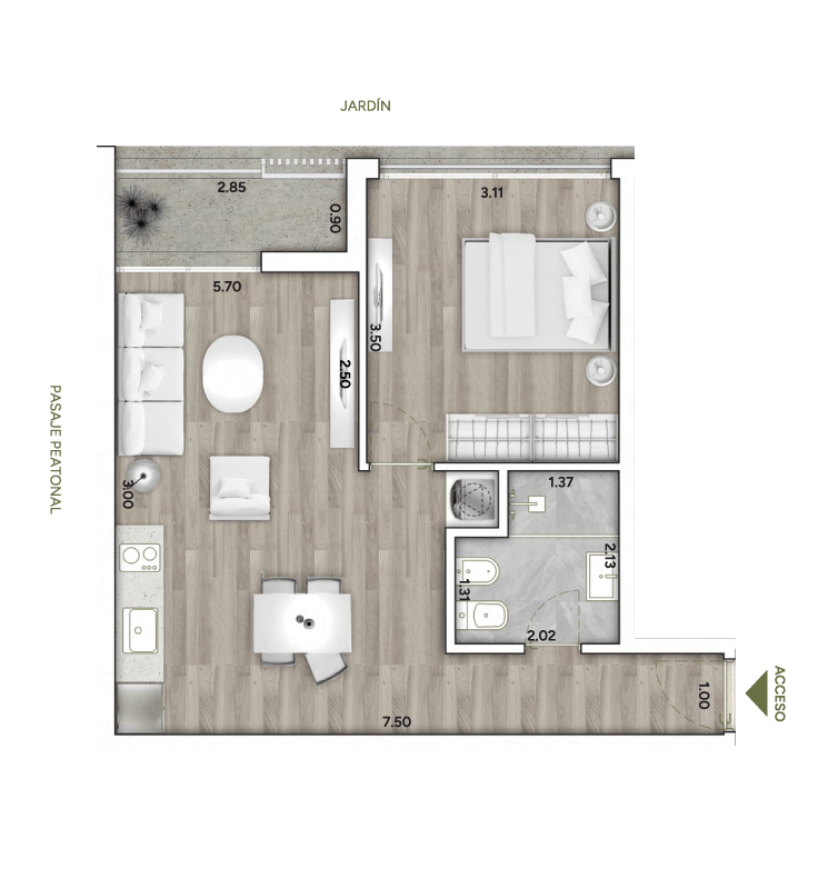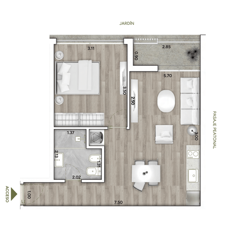 Puerta Jardín es un proyecto inspirado en la naturaleza, de estilo sobrio y atemporal, que cede el protagonismo a un jardín de cuidado paisajismo de 2.300 m², respetando la esencia de un barrio que guarda la rica historia arquitectónica de Montevideo y se integra a la tradición de espacios ajardinados característicos de la zona.